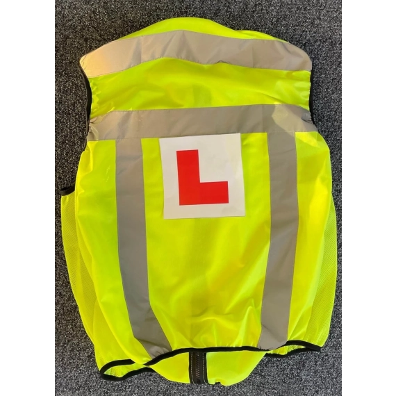 Refleksvest til opplæring med "L" på ryggen.